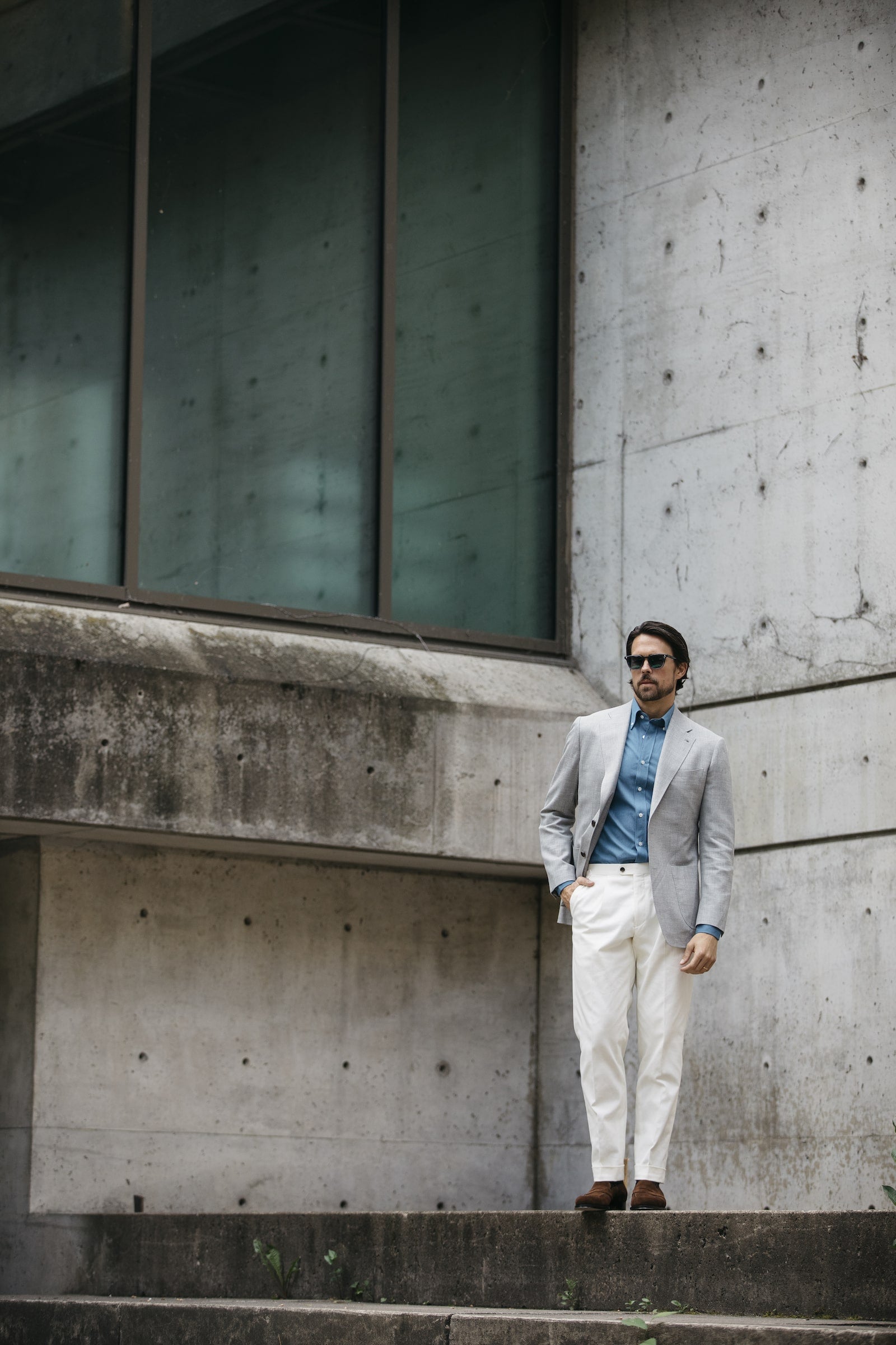When it comes to styling this summer staple, versatility is key. For a timeless look that exudes sophistication, opt for a classic navy or charcoal linen suit paired with a crisp white shirt and leather loafers. For a pop of color and personality, experiment with vibrant accessories such as pocket squares or patterned ties. For a more casual ensemble, pair a beige or khaki linen blazer with tailored chinos and suede loafers for a relaxed yet refined aesthetic. Remember to embrace the natural wrinkles of linen, as they add texture and depth to your look, because in the words of Annette Funicello, “life doesn’t have to be perfect to be wonderful”.