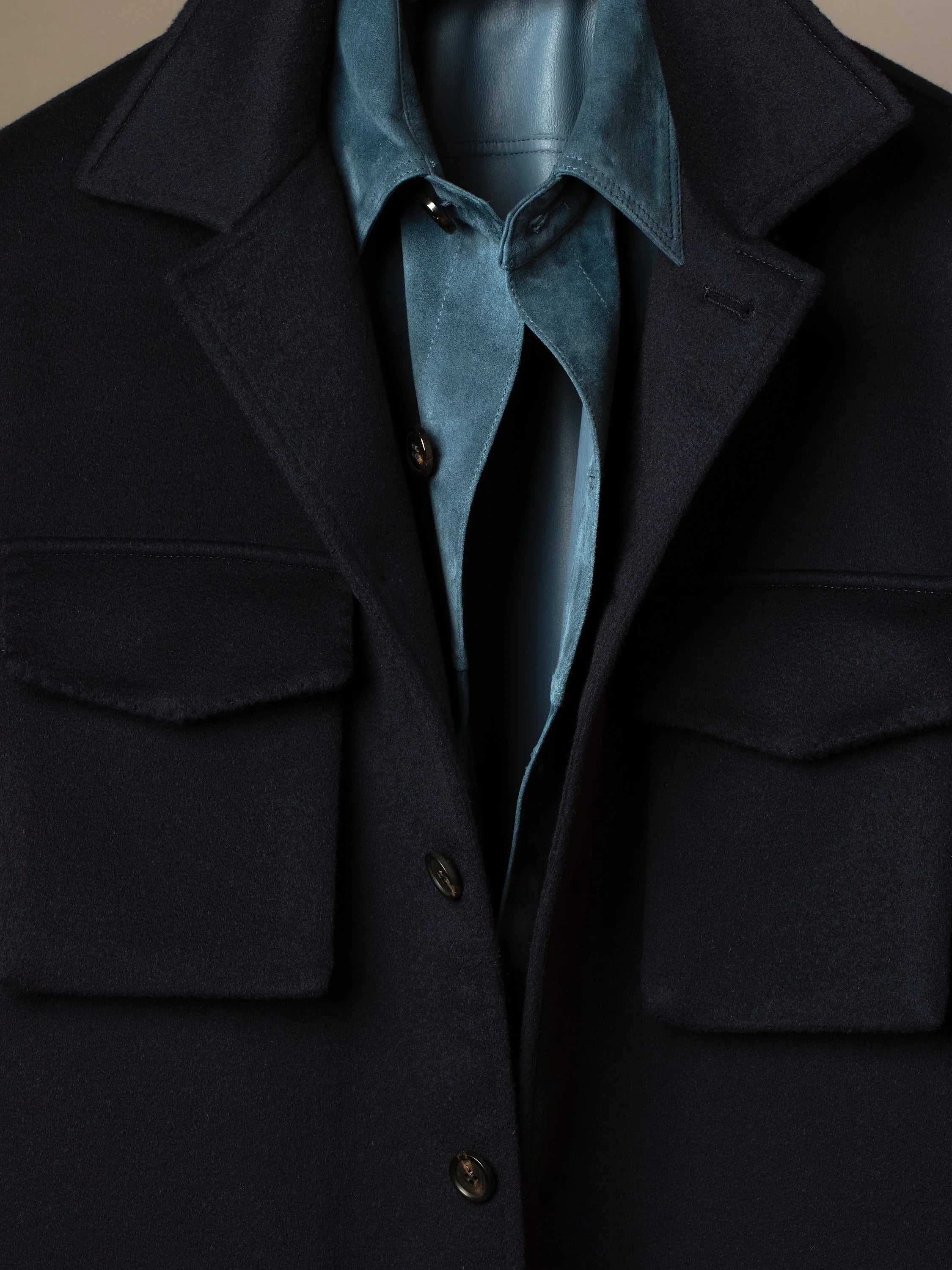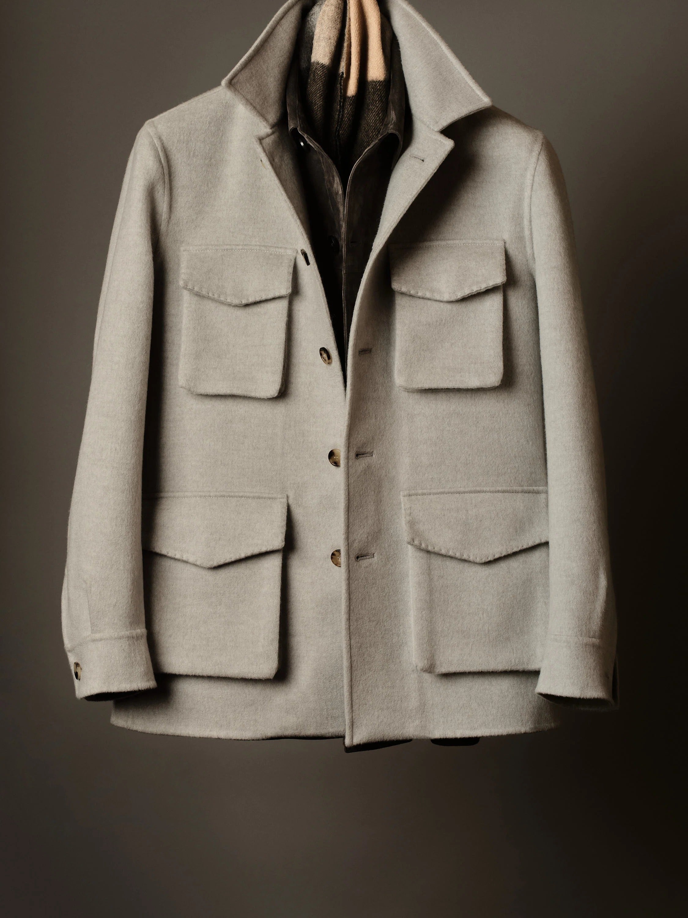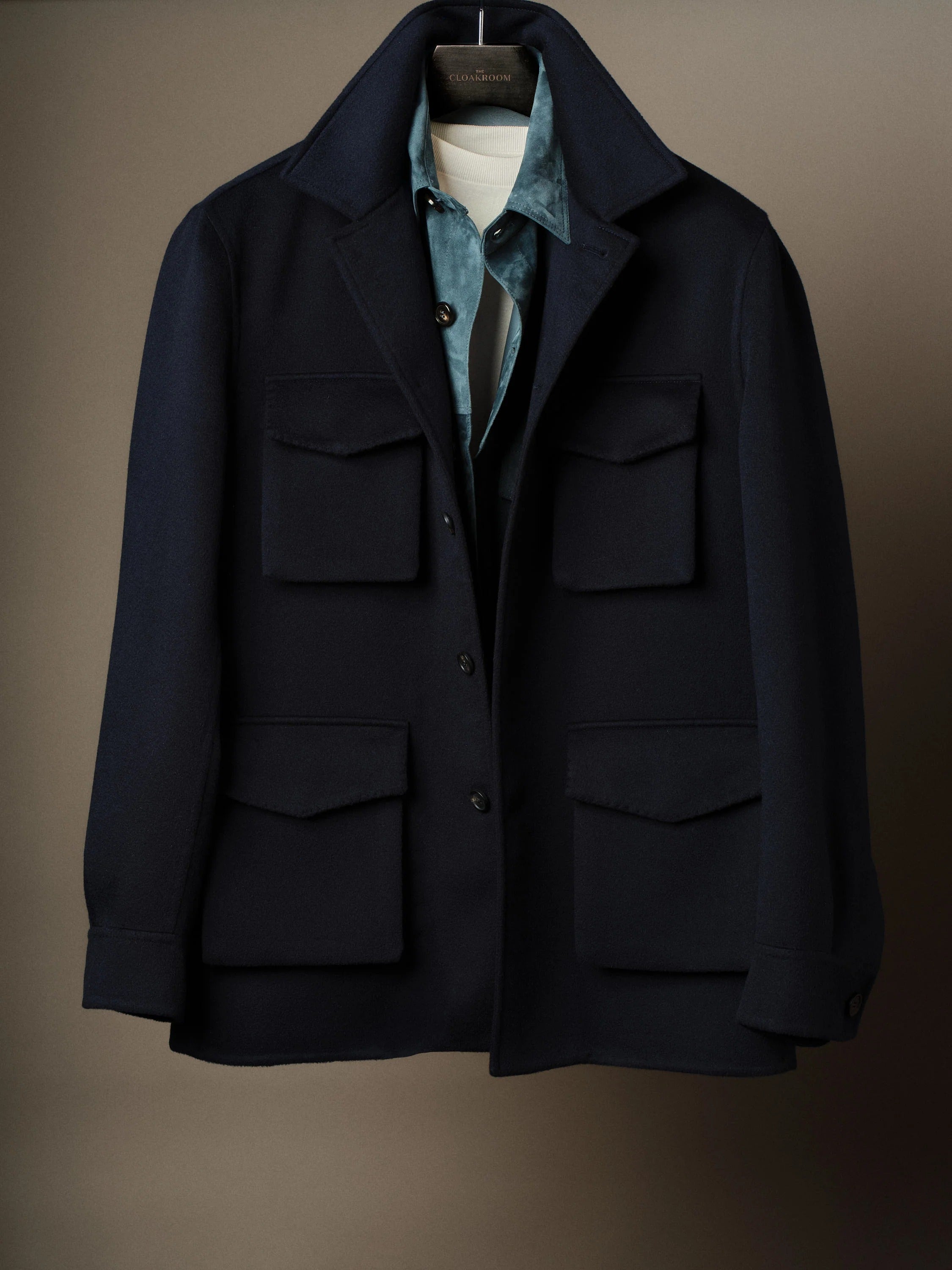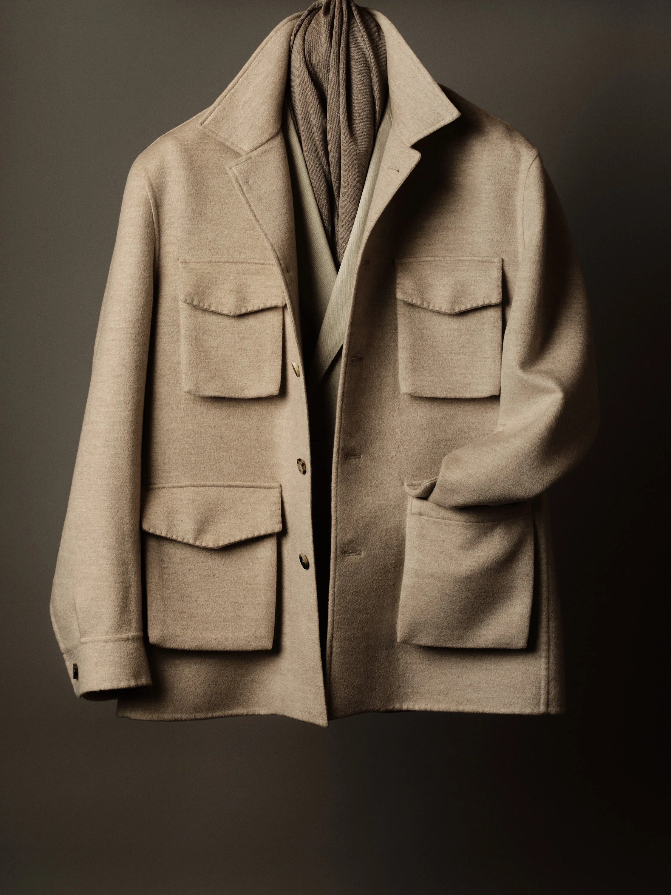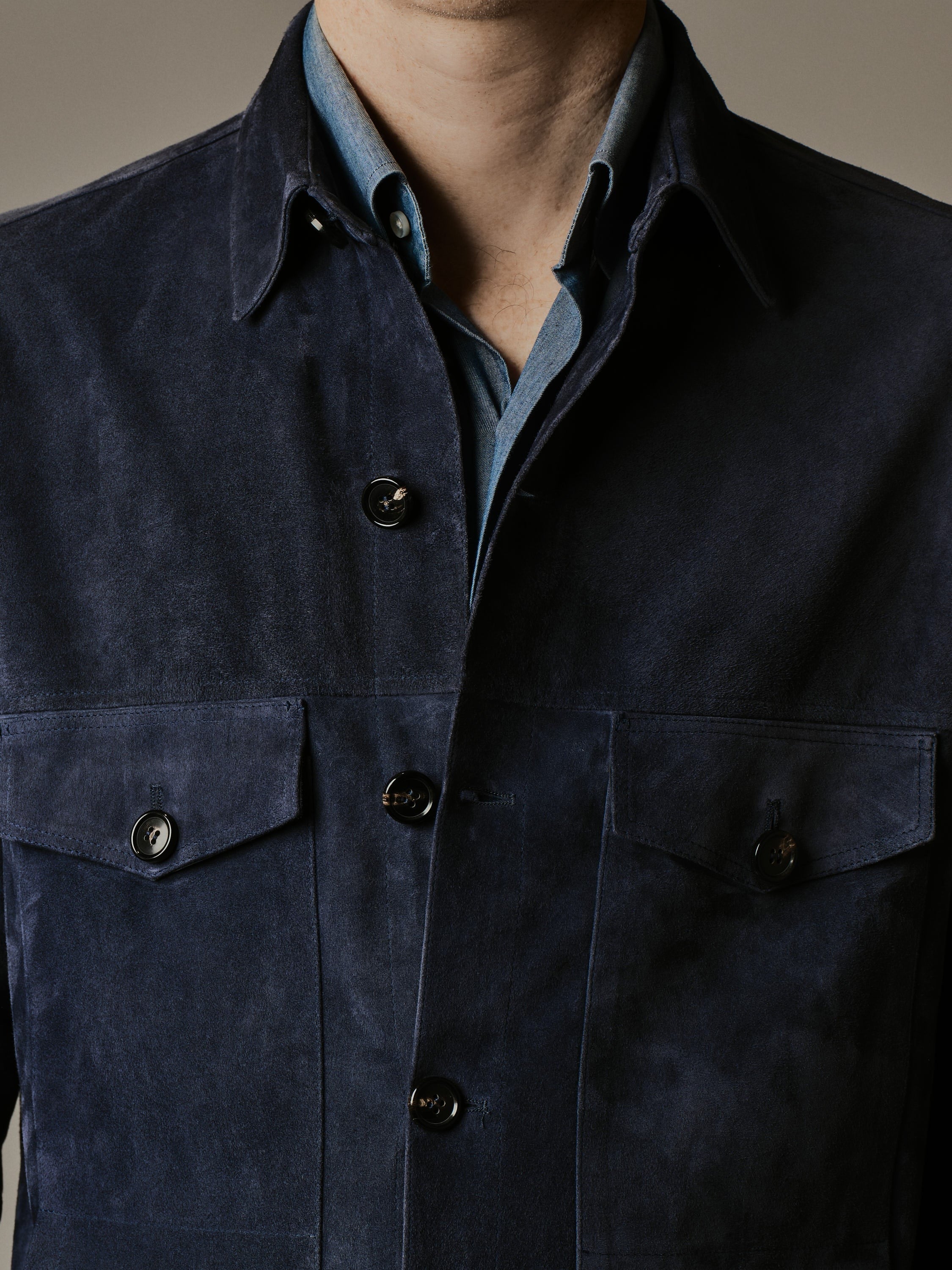 Offered in timeless styles including bombers, field jackets, and overshirts, each piece is cut from a considered selection of suede, leather, or cashmere, and tailored to your measurements and personal style.