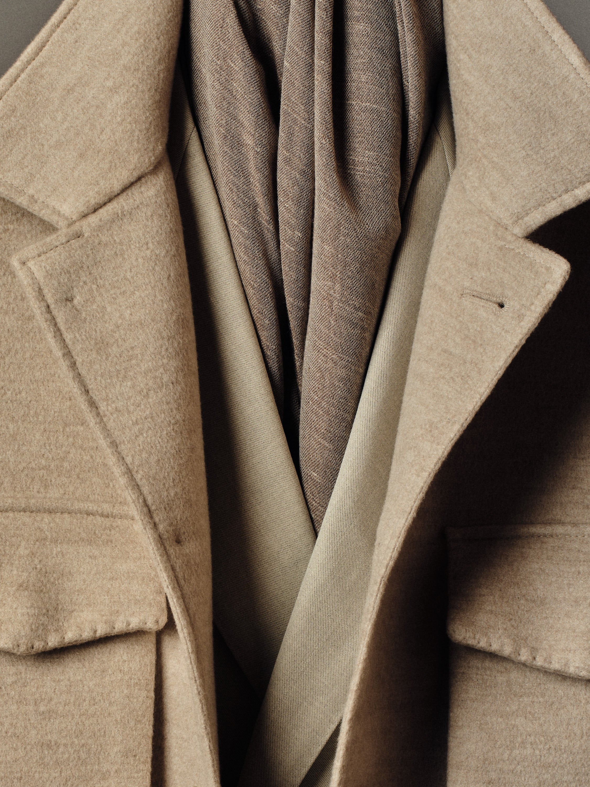 Cut from a double-faced cashmere/wool blend, our new range of cashmere outerwear is finished by hand with subtle stitching. Designed to balance formality and ease, it embodies our vision of tailoring that moves seamlessly between the refined and the relaxed.