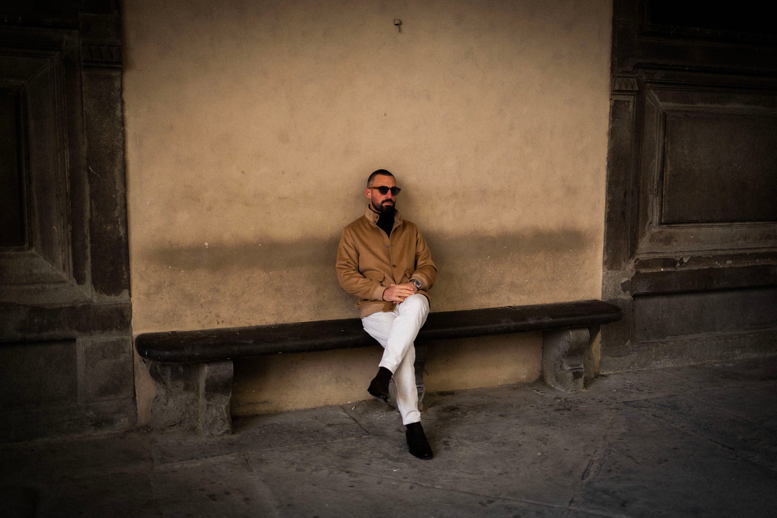 Malgré les poses et les démonstrations de style qui se déroulent devant la Fortezza da Basso — le genre de défilés qui inondent le fil Instagram de tout amateur de mode masculine au moins deux fois par an — le Pitti Uomo demeure une affaire sérieuse pour les marques et les entreprises comme la nôtre. C'est là que nous avons rencontré les artisans qui confectionnent nos costumes au Japon, que nous sommes tombés amoureux des chaussures Stefano Bemer et que nous avons découvert le créateur des plus belles vestes en cuir au monde — celles-là mêmes que l'on trouve maintenant dans notre salle d'exposition de Montréal.