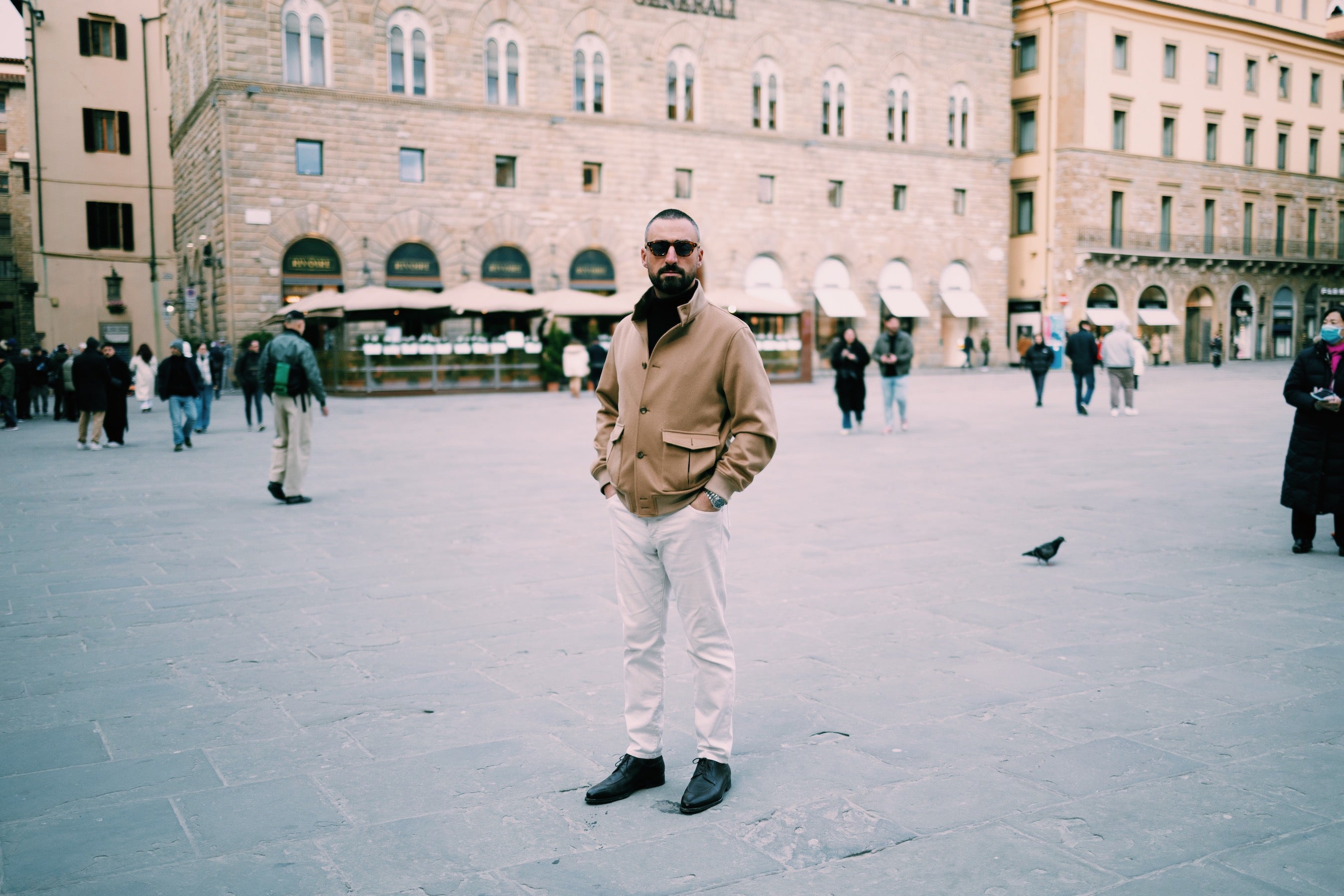 Cela dit, le Pitti Uomo reste très amusant. Après tout, passer la semaine à se détendre avec des apéritifs italiens, à savourer des vins toscans autour d'un steak et à flâner dans l'une des villes les plus riches en histoire et en histoire du monde - tout en étant photographié pour The Cloakroom Standard (le journal que vous lisez en ce moment) - est en effet une façon fantastique de passer la deuxième semaine de janvier.