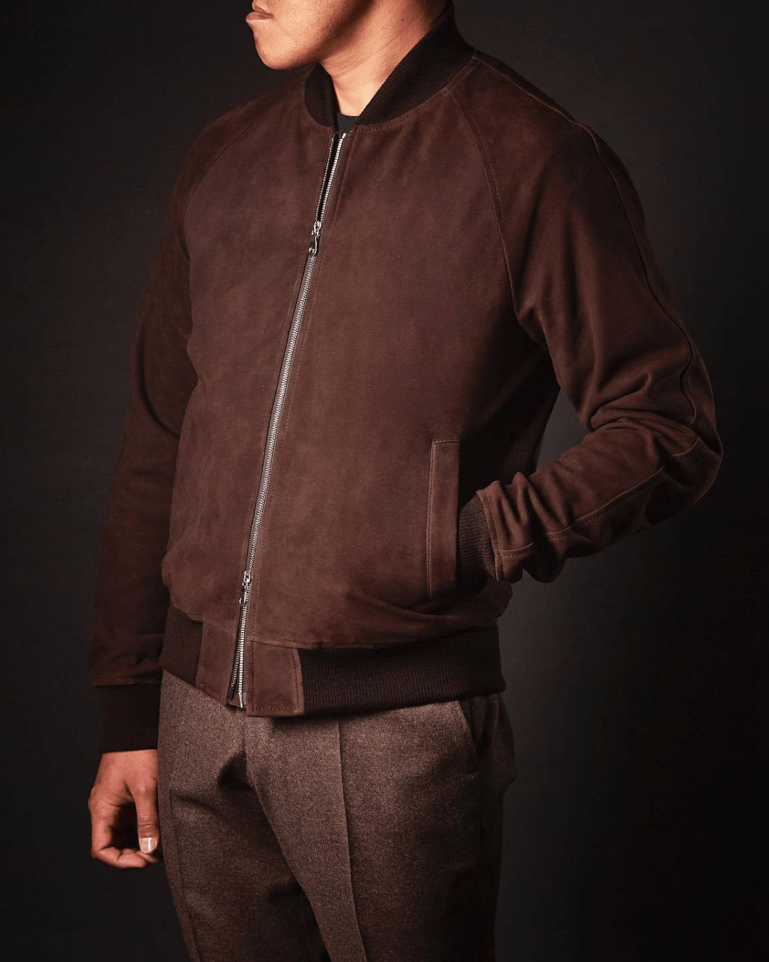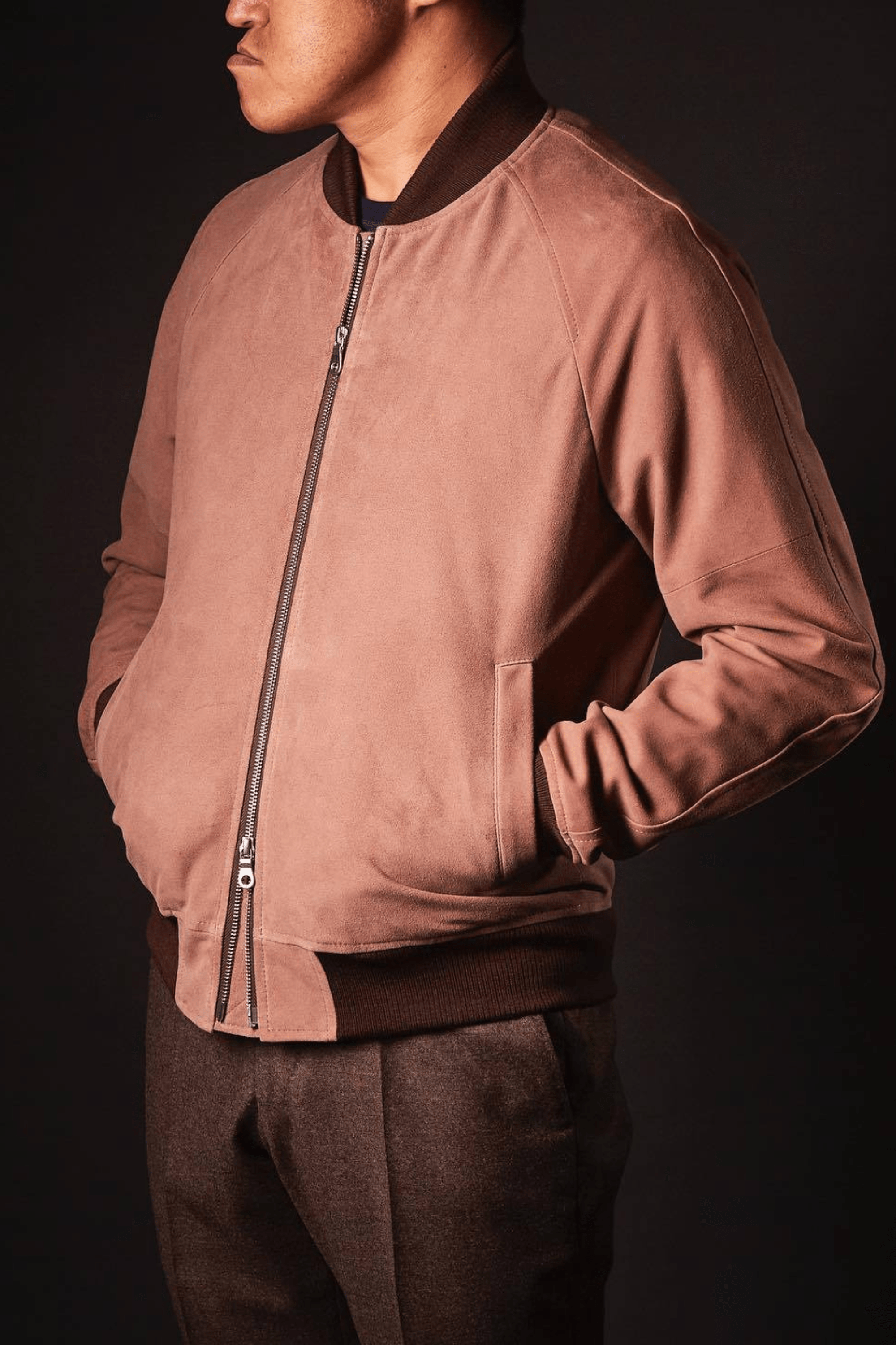 Our custom leather jackets can be cut in a range of different leathers and finished with different linings. Choose from soft and supple suedes, sheepskins, classic calf leathers and more. Similarly, choose to have your jacket lined in something lightweight like Bemberg for year-round use, or shearling, cashmere or wool for winter wear.