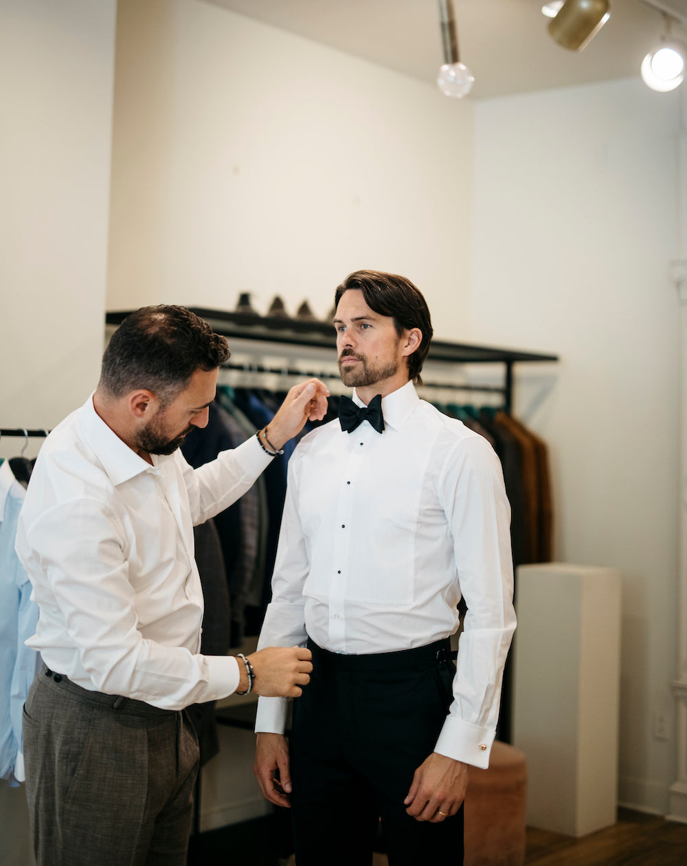 Schedule a complimentary consultation with one of our expert staff. During this initial consult, we'll run through any ideas and inspirations you have, and get a sense of what you're looking for in your wedding suit.